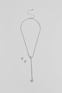 Perfect your sparkle game with this rhinestone lariat necklace and stud earrings set. Featuring teardrop accents and adjustable chains, it's your go-to for glam vibes anytime, anywhere.