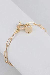 You'll love the trendy look this paperclip chain bracelet brings to your everyday stack! Accented with a heart lock charm, it features a toggle closure.