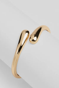You'll obsess over the sleek structure of this trendy cuff bracelet! It features a teardrop-shaped overlapping design with a snap closure. Style with hoop earrings.