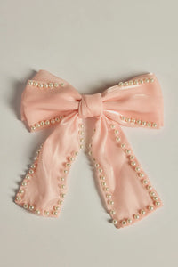 Achieve a charming hairstyle with this faux pearl trim chiffon hair bow to dress up your style! Complete the look with an adorable purse for any occasion or event.