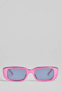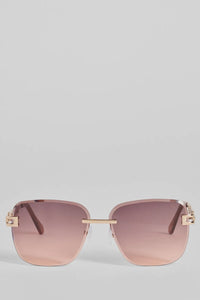 Top off your fab summer 'fits with these trendy shades! The sunglasses feature a rectangular-shaped design, a plastic frame with a glam metallic sheen, built-in nose pads, and tinted lenses. Style with hoop earrings and a charm necklace.