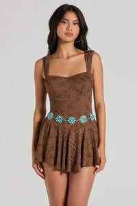 Whether you're traveling over seas or staying on dry land, this concho belt will give your outfit a western-inspired flair! It features etched metal pieces with colored stones in a flower pattern, a chain link, and a lobster clasp closure. Complete the look in a trendy hat.