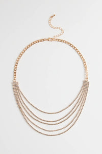 This stunning layered rhinestone necklace adds a touch of sparkle and elegance to any outfit and is perfect for any occasion!