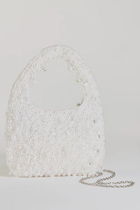 Elevate your formal outfits with a chic handbag that brings the luxe! The handbag features a small square silhouette, a top handle, a dainty chain-link shoulder strap, and beaded faux pearl accents throughout. Complete look with a sequin mini dress for your next night out!