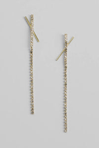 Undeniably sleek and glam, adorn your look with this rhinestone earring featuring a crisscross design with a single rhinestone fringe and bar trim secured with a post-back closure. Complete the look with a chic choker.