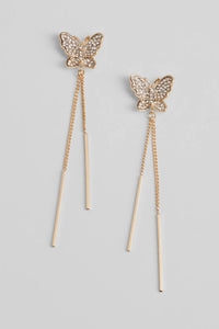 These charming earrings add a whimsical style to your look! They feature butterflies with mini rhinestone embellishments, linear chains with bar trim, and a post-back closure. Complete the look with a trendy denim jacket.