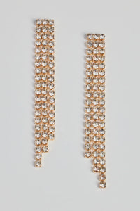 Shine in these earrings featuring rhinestone fringe and a secure post-back closure. Perfect for styling with a necklace.