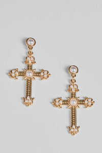 Get blessed with style in these cross earrings! They feature a top faux pearl post with an attached cross with faux pearl embellishments. Complete the look in a sassy corset dress for going out.