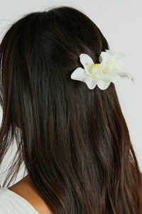 Enjoy the island under the sun adorning your tresses with this beautiful tropical flower hair comb! Complete the look in a matching set and sandals.