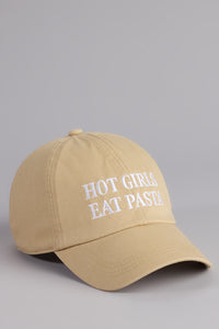 - Embroidered text reads, "Hot Girls Eat Pasta"
