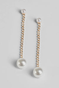Simply Elegant Pearl And Rhinestone Drop Earrings Simply Elegant Pearl And Rhinestone Drop EarringsThese simply elegant embellished drop earrings will give your looks that subtle chic touch. They feature a small faux pearl post, a linear drop design with mini rhinestone embellishments, and a large faux pearl accent at the bottom. Include a post-back closure. Style with a dainty necklace. Fit & Features - Small faux pearl post