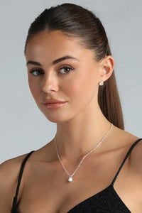 Class Is Timeless Necklace And Earrings Set Class Is Timeless Necklace And Earrings SetA timeless necklace and earrings set to give your dress a classy finish! The set features a dainty chainlink necklace with a cubic zirconia charm, lobster clasp closure, and matching stud earrings with a cubic zirconia stone and post-back closure. Complete the look with an embellished purse for a formal event. Fit & Features - Necklace and earrings set