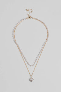 Luxe Moment Faux Pearl Layered Necklace Luxe Moment Faux Pearl Layered NecklaceYou'll always give off luxe vibes in this layered necklace featuring a faux pearl layer and a dainty chain layer with a faux pearl charm and lobster clasp closure. Complete the look in a short dress for any plans! Fit & Features - Faux pearl layer