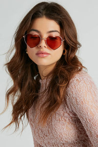 Flirty Fling Heart-Shaped Sunglasses Flirty Fling Heart-Shaped SunglassesFlirt up a storm in these adorable heart-shaped sunglasses perfect for the summer season! Featuring the cutest heart-shaped design with tinted lenses, these shades have a sleek thin metal frame with thin arms, a thin metal nose bridge, and rubber nose pads for support. Style with hoop earrings for a music festival! Fit & Features - Heart-shaped design