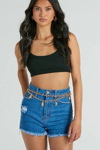 Sky Gazing Moon Star Chain Belt Sky Gazing Moon Star Chain BeltAdorn yourself with celestial style with this moon star chain belt perfect for skygazers and dreamers! Featuring charming moon and star charms and a secure lobster clasp closure, this chain belt adds a touch of magic to any outfit. Complete the look in a trendy denim romper for a festival, concert, or night at the fair! Fit & Features - Moon and star charms