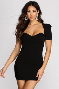 A Moment To Remember Crepe Puff Shoulder Mini Dress