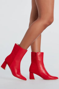 These ankle booties will make your outfit very memorable! They feature a faux leather front with a pointed-toe, inner zipper closure, and a faux suede back with a block heel that has a shiny gold metal trim. Complete the look in a chic trench coat for a dinner and show downtown!