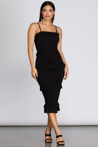 - Ruffle-Trim At Square Neckline & Tiered Along The Bodice & Skirt