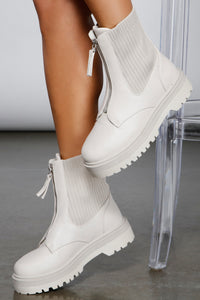 You in these trendy booties will be a total vibe! The booties feature a round toe, a ribbed sock bootie design at the ankle, a zip-front, and a chunky tall lug sole. Style these booties with faux leather leggings.
