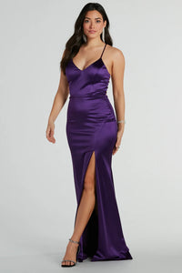 Abbey Lace-Up Slit A-Line Satin Formal Dress