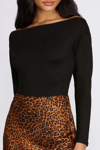 The simple style of this basic bodysuit is all you need to start off a perfect look. It features a wide boat neckline, long fitted sleeves, and a partial coverage bottom with dual snap button closures. The soft brushed knit fabric offers plenty of stretch and a form hugging fit.Style Number/Barcode: 06001-1998