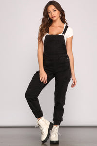 Add some edge to your everyday look with these destructed overalls! They feature adjustable shoulder straps with hook closures, a front kangaroo pocket, front and back pockets, cargo-style side pockets, and a relaxed fit with a jogger hem. Style these overalls with a basic tee and combat boots.