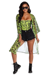 Make a bright and fierce statement with this cute duster! It features three quarter length flowy sleeves paired with an open front and a relaxed fit. The duster is composed of a sheer mesh fabric with plenty of stretch. Don't forget to purchase the matching swimsuit!Model is 5'6" with a 34" bust, 24" waist and 37" hips. She is wearing a size small.
