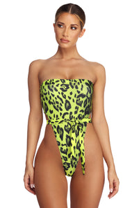 Make a fierce statement with this swimsuit! It features a tube top elastic banded neckline, an extreme high cut with a very cheeky bottom, and a front tie to cinch the look. Don't forget to purchase the matching duster!RETURNS ACCEPTED ONLY WHEN ALL TAGS AND HYGIENIC PROTECTION ARE INTACT.