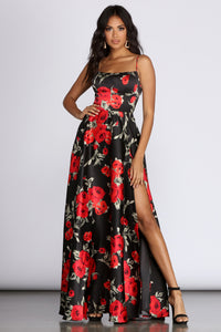 Lace up in our romantically-inspired Adelia dress! She features a sleeveless bodice, a scoop neckline, padded cups, adjustable spaghetti straps and an empire waist. Her back features a bold open design accented with lace up straps. Her waist leads to a sweeping A-line skirt with a high side slit to bring the drama! She is composed of lined satin-like fabric that offers a relaxed fit with minimal stretch.