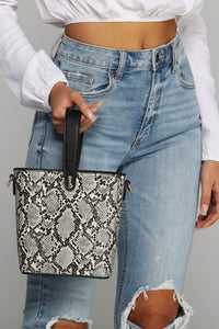 Add some sass to your stylish look with this trendy bag! It features a bucket design, top zipper closure, two pockets in the interior, a thick faux leather top handle, and a faux leather crossbody strap. The bag is composed of a textured faux leather material.