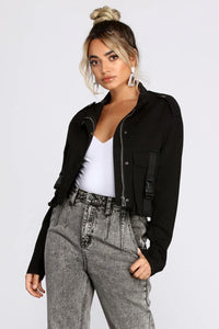 Buckle up into this chic cropped jacket babe! Pair with some high rise denim and sleek stilettos for that total it girl vibe.