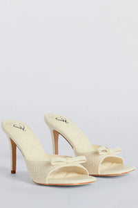 Adorable Finesse Knit Bow Stiletto Heels Adorable Finesse Knit Bow Stiletto HeelsElevate your adorable finesse in these stiletto heels for a sweet look! The square toe and knit strap with bow inset provide a unique and stylish look, a stiletto heel and cushioned insole offer comfort. Complete the look with a trendy tote bag. Fit & Features - 4" Stiletto Heel
