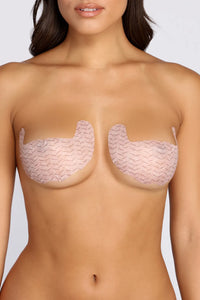 Get a seamless look and the right amount of coverage with this disposable body bra. This natural-colored adhesive can be cut to size and offers moderate lift and coverage.
