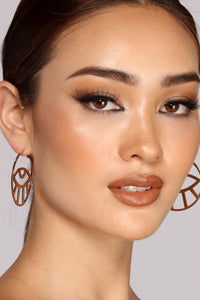 These medium sized hoops feature a flat design, As well as an eye shaped cut out with bottom lashes at the center. These boho inspired hoops have an omega closure. All eyes on you!