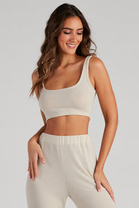 Bring all the cozy vibes with this fuzzy knit pajama tank! It features a sleeveless scoop neckline, tank shoulder straps, and a cropped, form-hugging fit. The lightweight soft knit fabric offers a moderate stretch. Style with the matching pajama pants for the cutest loungewear look.