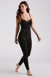 This adorable catsuit will give you all the comfy vibes! It features a sleeveless scoop neckline with a center-notched design, spaghetti straps, a low scoop back, and an all-over form-hugging fit. Style with cute sneakers and a denim jacket for the perfect casual look.