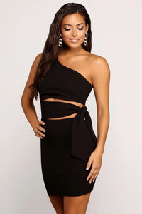 This trendy knit crop top is most def a cut above the rest! Paired with a chic curve hugging midi skirt and some strappy heels, you'll be ready for a GNO!