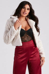 Make it a formal affair with a coat that brings that extra touch to your dressy outfits. The coat features a collared neckline, a removable faux fur collar, long sleeves, a tie-waist belt, and a long length with a center-high slit at the back. The long coat is composed of a lined faux wool fabric that offers a relaxed fit. Complete look with thigh-high boots.