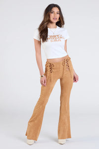 Serve major attitude in these faux suede pants with trending lace-ups and a flared hem perfect for country bars or festivals!