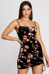 Have a major floral moment in this adorable woven mini dress! It features a sleeveless sweetheart neckline with ruching at the bust, thin ruffle-detail shoulder straps, a smocked back, and a short, curve-hugging silhouette. The all-over ditsy floral print is perf for summer. Style this dress with casual sneakers.
