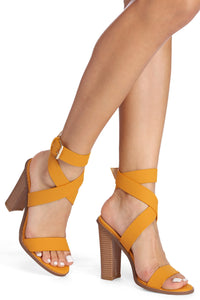 These are the heels that you can pull off any time of the day for all occasions ! These beauts feature a criss cross wrap around ankle strap with a buckle closure. They have a single strap with an open toe and a wooden stacked heel. They are composed of a nubuck material and a faux leather insole.