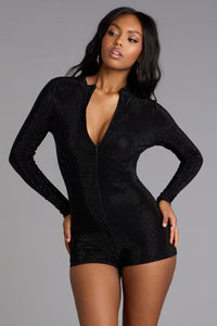 Sultry Sparkle Rhinestone Zip-Up Romper