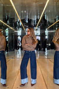 Denim made for double takes. These straight-leg jeans serve all the attitude with their dramatic cuffed hem, structured fit, and laid-back ‘model off-duty’ energy. Style them with kitten heels or sneakers—either way, they’re the moment.