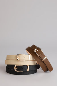 Polish every fit with this essential belt set featuring three faux leather designs with sleek gold buckles — the perfect match for bodycon dresses, jeans, or that oversized blazer moment.