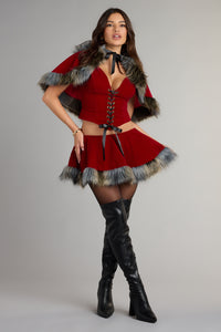 Once upon a glow-up—this Little Red mini skort is giving storybook baddie. Perfect for Halloween costume parties when you want your fairytale with a sultry twist!