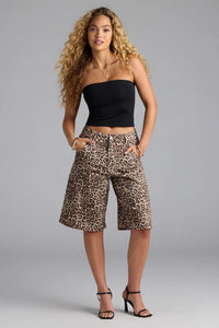 Running Wild Leopard Mid Rise Bermuda Denim Shorts