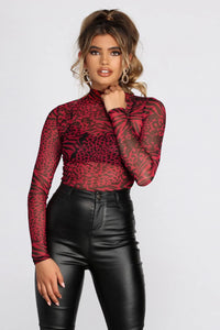 Stay forever fierce babe! This printed mesh bodysuit will instantly amp up your look.