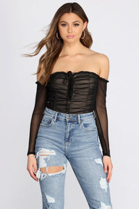 Sexy and sultry, this ruched mesh bodysuit is a go-to for a night out!