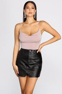 Sultry Slinky Cowl Neck Bodysuit