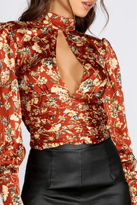 Chic and sultry, this satin blouse is so fall-ready. Its all over floral print adds a stylish flair.